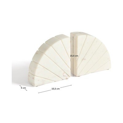Podpórki do książek Serela marki Kave Home zostały wykonane z marmuru, co sprawia, że każdy egzemplarz zachwyca unikalnym wyglądem i autentycznym żyłkowaniem. Ich design wyróżnia się prostymi liniami i wyraźnie zarysowanymi krawędziami, harmonijnie łącząc elegancję z wyrazistym charakterem.