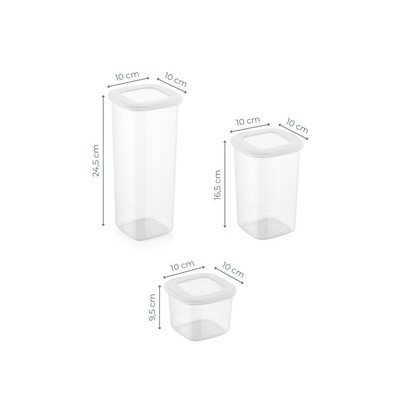 - 3x pojemnik 1200 ml o wymiarach 10 x 10 x 16,5 cm,