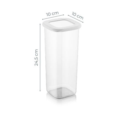 Praktyczny rozmiar, mieści kilogram mąki, cukru i makaronu... Wysokie pudełko nie zajmuje dużo miejsca, jest lekkie i poręczne.