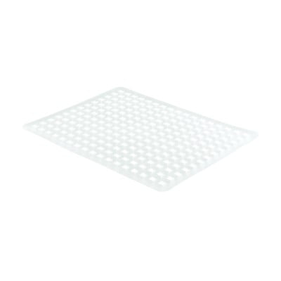 Produkt idealny wymiarowo do zlewów o wymiarach 53x47 cm, zakrywa całe dno. Kolor przeźroczysty jest bardzo dobry do białego zlewu.