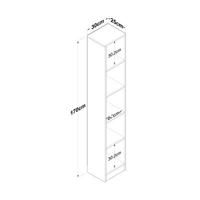 W dekorze orzecha, z płyty MDF, powłoka: melamina, w naturalnym kolorze, szerokość 30 cm, wysokość 170 cm, głębokość 25 cm