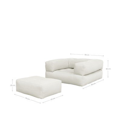 W wersji podstawowej będzie to fotel, do którego jest dołączony również podnóżek/puf. Następnie puf wystarczy ułożyć po środku fotela, by stworzyć przestrzeń do relaksu o kształcie kwadratu.