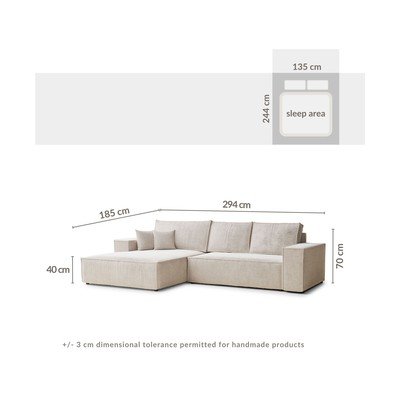 Kremowy rozkładany/ze schowkiem narożnik z tkaniny szenilowej (lewostronny/z szezlongiem) Maze – Maison de Rêve