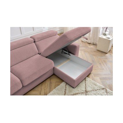 Z tkaniny szenilowejDo spania/częściowo rozkładany/rozkładany/ze schowkiemPrawostronny/lewostronny/strona zmienna/z szezlongiemRóżowyCzteroosobowySzerokość 307 cm