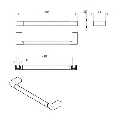 Ścienny, z mosiądzu, w kolorze złota, 45x7 cm, wysokość 3 cm