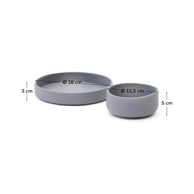 W skład zestawu wchodzą dwa elementy – płaski talerz oraz miseczka.