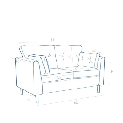 Siedzisko i poduszki mają zdejmowalny pokrowiec, co pomaga w utrzymaniu sofy w dobrym, schludnym stanie przez lata (czyścić można za pomocą mokrej ściereczki lub prać na sucho). Pokrowiec jest wykonany z tkaniny o wysokim współczynniku martindale (50 000), co znaczy, że jest bardzo odporna na zniszczenia.