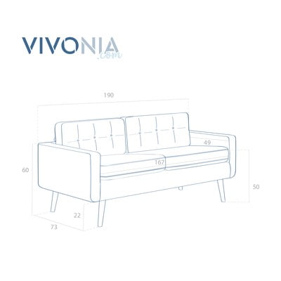 JasnoszaraTrzyosobowaSzerokość 184 cmGłębokość 73 cmGłębokość siedziska 49 cm