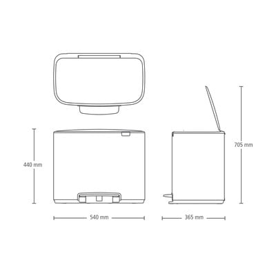 Kompaktowa konstrukcja zapewnia dopasowanie do mniejszych przestrzeni, na przykład blisko ściany lub w rogu. Pojemnik posiada również miękką, antypoślizgową podstawę, która eliminuje zarysowania podłogi.