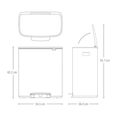 Kompaktowa konstrukcja zapewnia dopasowanie do mniejszych przestrzeni, na przykład blisko ściany lub w rogu. Pojemnik ma również miękką, antypoślizgową podstawę, która eliminuje zarysowania podłogi.