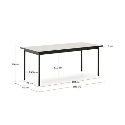 Konstrukcja wykonana z galwanizowanej stali zapewnia stołowi nowoczesny wygląd oraz wysoką trwałość, dzięki odporności na rdzę i korozję. Nóżki wyposażono w plastikowe ochraniacze, które zabezpieczają każdą powierzchnię podłogi. Dzięki temu stół Maurina jest idealny zarówno do użytku wewnątrz pomieszczeń, jak i na zewnątrz.