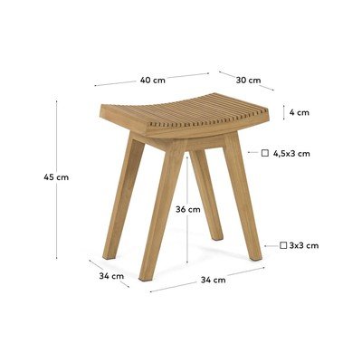 Stołek Vicentina marki Kave Home został wykonany z litego drewna tekowego. Jego siedzisko tworzą zakrzywione lamele, które nadają mu nowoczesny i stylowy wygląd.