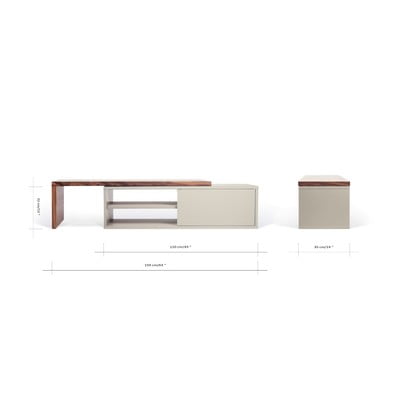 Szafka pod TV MoveNarożna, w dekorze orzecha, z płyty wiórowej, powłoka: fornir/powłoka: barwienie, szara/w naturalnym kolorze, szerokość 110 cm, wysokość 32 cm, głębokość 41 cm