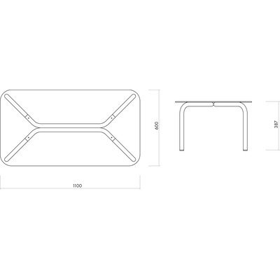Ze szklanym blatem, w kolorze srebra, 60x110 cm, wysokość 39 cm