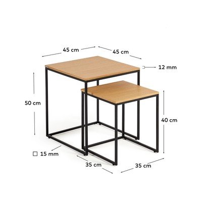 Zestaw stolików Yoana marki Kave Home to praktyczny i stylowy dodatek do Twojego wnętrza. Składa się z dwóch stolików, które idealnie do siebie pasują, dzięki czemu możesz je rozłożyć lub schować, gdy tylko zajdzie taka potrzeba.