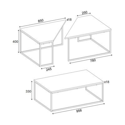 3 szt., z blatem w dekorze dębu, szare/beżowe/w naturalnym kolorze, 70x110 cm, wysokość 42 cm