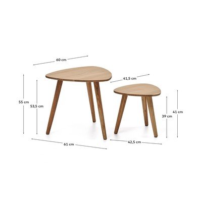 Zestaw stolików Duvani marki Kave Home to praktyczny komplet dwóch sztuk, które z łatwością wsuniesz jeden pod drugi. Wykonane są z litego drewna akacjowego, co gwarantuje ich trwałość i naturalny urok.
