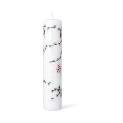 Motywy, które znajdziesz na świecy są dziełem artystki Rikke Jacobsen, która namalowała je techniką akwareli. Wszystkie są pięknie ułożone na cedrowej gałęzi z modrzewiowymi szyszkami, a świeca jest oznaczona numerami od 1 do 24.