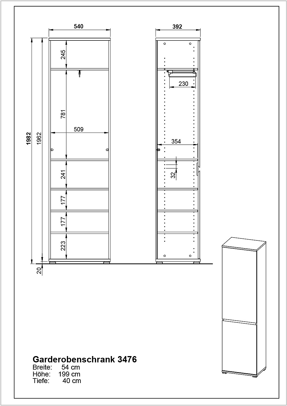 W dekorze dębu, z płyty wiórowej, powłoka: melamina, w naturalnym kolorze, szerokość 54 cm, wysokość 200 cm, głębokość 40 cm
