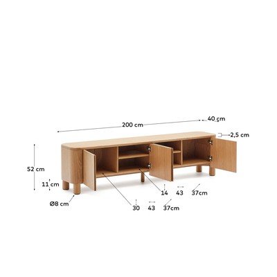 Szafka pod TV SalayaW dekorze jesionu, z płyty MDF, powłoka: fornir/powłoka: lakierowanie, w naturalnym kolorze, szerokość 200 cm, wysokość 52 cm, głębokość 40 cm