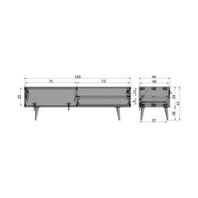 Z litego drewna dębowegoPowłoka: bez wykończenia (surowe)W naturalnym kolorzeSzerokość 150 cmWysokość 47 cmGłębokość 44 cm