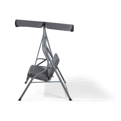 Huśtawka ogrodowaMetalowa, szara, nośność 280 kg, szerokość 174 cm, wysokość 147 cm, głębokość 118 cm