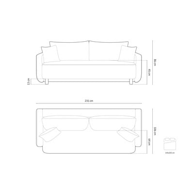 Beżowa rozkładana sofa ze schowkiem 231 cm Elen – Micadoni