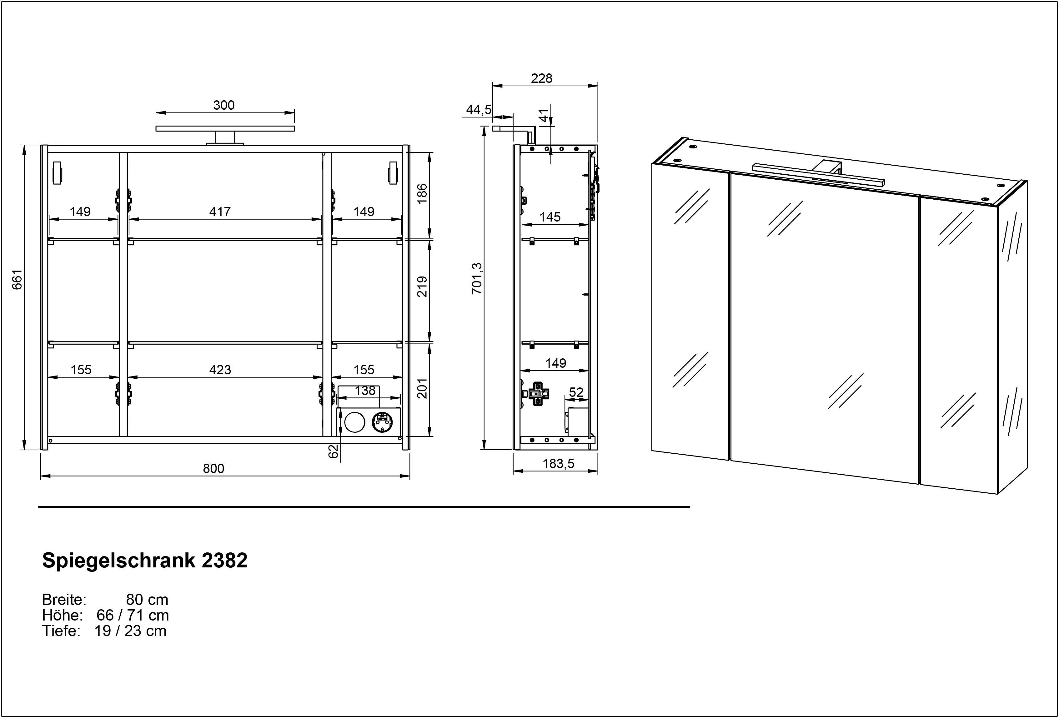 Wisząca/z lustrem/z oświetleniem, z płyty wiórowej, powłoka: melamina, szara, szerokość 80 cm, wysokość 71 cm, głębokość 13 cm