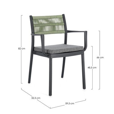 Krzesło ogrodowe Alvin marki Bizzotto łączy w sobie nowoczesny design i wygodę. Krzesło wykonane jest z wytrzymałego tworzywa sztucznego w eleganckim szarym kolorze, który łatwo łączy się z innymi meblami ogrodowymi. Dla maksymalnego komfortu jest wyposażone w podłokietniki i zdejmowaną poduszkę w szarym kolorze.