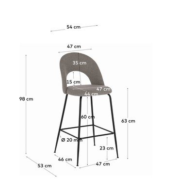 Hoker Mahalia marki Kave Home to połączenie elegancji i praktyczności. Jego siedzisko, umieszczone na wysokości 63 cm, zostało obite wodoodporną tkaniną, co gwarantuje łatwość w utrzymaniu czystości i długotrwałe użytkowanie. Solidna stalowa konstrukcja zapewnia stabilność, a dla większego komfortu wyposażono go w praktyczne podnóżki.