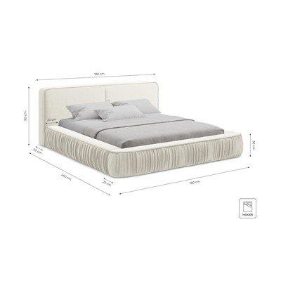 Kremowe tapicerowane łóżko dwuosobowe ze schowkiem i stelażem 140x200 cm Keoni – Makamii