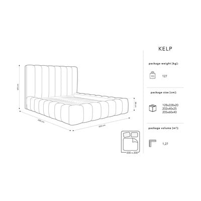 Łóżko dwuosobowe Kelp200x200 cm, ze schowkiem, ze stelażem, tapicerowane, aksamitne, szare
