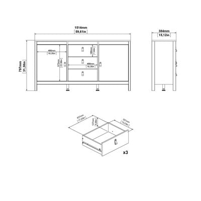Z płyty wiórowejPowłoka: foliaSzarobeżowaSzerokość 152 cmWysokość 80 cmGłębokość 38 cm