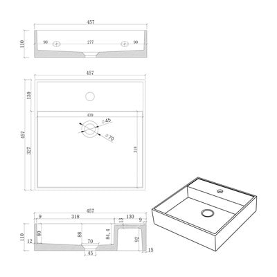 Umywalka QuadradoBetonowa, szara/beżowa, szerokość 46 cm, głębokość 46 cm, wysokość 11 cm