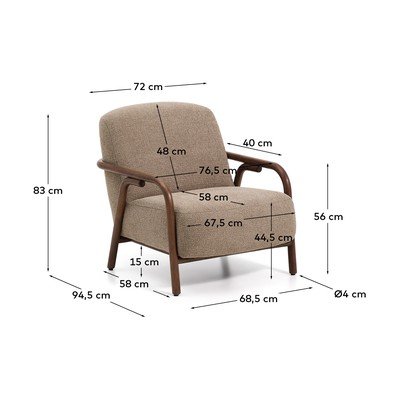 Fotel Sylo marki Kave Home wyróżnia się obszernym oparciem i szerokim siedziskiem, które zostały otoczone zaokrągloną konstrukcją z litego drewna jesionowego. Nadaje to meblowi wizualnej lekkości oraz przytulnego, otulającego charakteru.