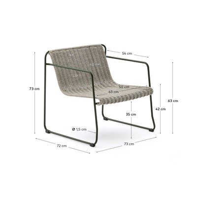 Siedzisko i oparcie fotela zostały ręcznie wyplecione z wytrzymałego sznura, który jest odporny na promieniowanie UV. Dzięki temu materiał zachowuje trwałość i stabilność przez długi czas. Konstrukcja fotela wykonana jest ze stali galwanizowanej, specjalnie przygotowanej, aby zapewnić podwyższoną odporność na korozję. To sprawia, że jest ona znacznie trwalsza niż zwykła stal, co gwarantuje pełną funkcjonalność mebla na zewnątrz.