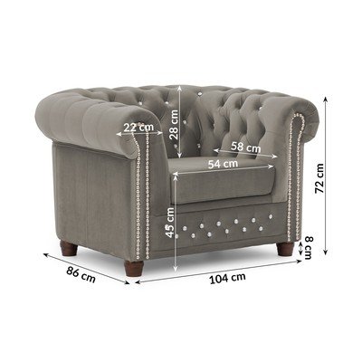 Szary aksamitny fotel typu chesterfield York Blik – Ropez