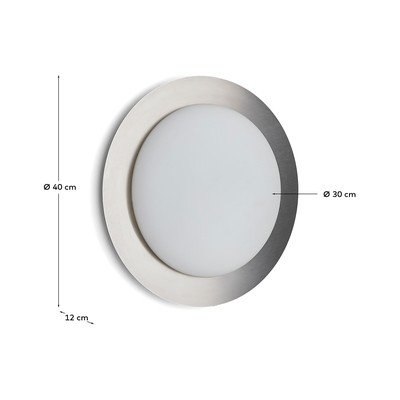 Kinkiet LED Novae marki Kave Home został zaprojektowany z myślą o dyskretnym i eleganckim oświetleniu. Jego okrągły kształt z matowym szkłem pośrodku i ramą ze szczotkowanego metalu sprawia, że pasuje do każdego wnętrza. Szklany klosz tworzy przytulną i równomierną atmosferę, idealną zwłaszcza do łazienki.
