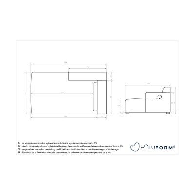 Lewostronny/z szezlongiemCiemnoszarySzerokość 92 cm