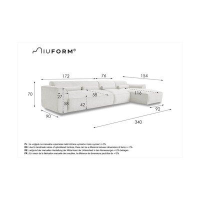 Prawostronny/z szezlongiemCiemnoszaryPowyżej 4 osóbSzerokość 340 cmGłębokość 154 cmGłębokość siedziska 58 cm