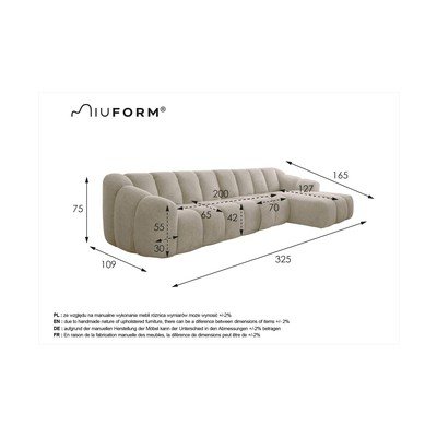 Beżowy narożnik (prawostronny/z szezlongiem) Shell – Miuform