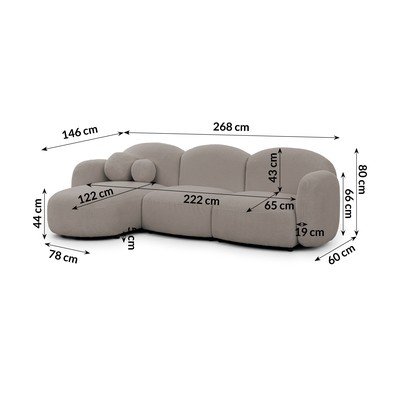 Jasnobrązowy narożnik z materiału bouclé (lewostronny/z szezlongiem) Orbit – Ropez