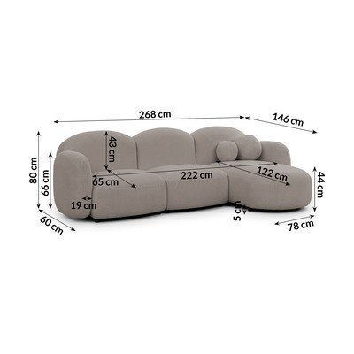 Jasnobrązowy narożnik z materiału bouclé (prawostronny/z szezlongiem) Orbit – Ropez
