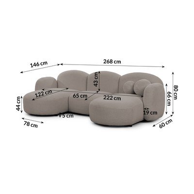 Szary narożnik z materiału bouclé (lewostronny/z szezlongiem) Orbit – Ropez