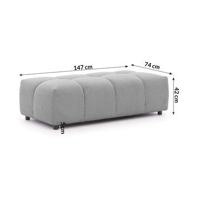 Szary, szerokość 147 cm, głębokość 74 cm, wysokość 42 cm