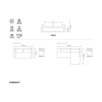 Beżowy rozkładany narożnik (prawostronny/z szezlongiem) Hale – Makamii