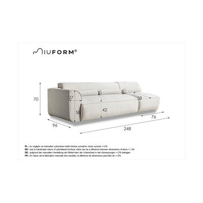 PrawostronnaCiemnoszaraCzteroosobowaSzerokość 248 cmGłębokość 96 cmGłębokość siedziska 58 cm