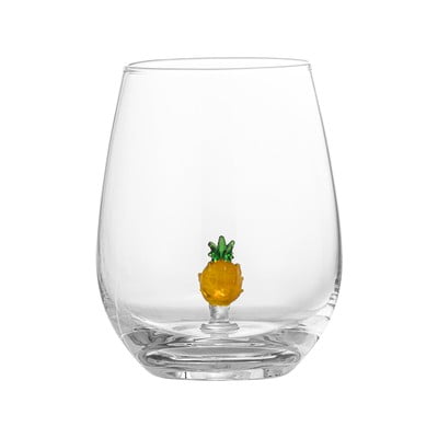 Na dnie szklanki znajduje się dekoracyjny detal ananasa, który dodaje projektowi figlarności. Szklanka ma pojemność 560 ml i jest ręcznie dmuchana, dzięki czemu każdy egzemplarz jest oryginalny.