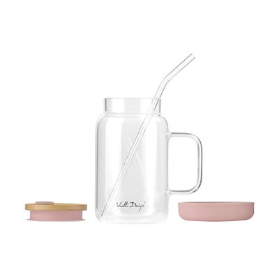 W zestawie znajduje się również elegancka szklana słomka – zalecamy ostrożność w czasie używania ze względu na jej kruchość. Szklanka wykonana jest z wytrzymałego szkła borokrzemowego i zachowuje stabilność dzięki plastikowej podstawie.