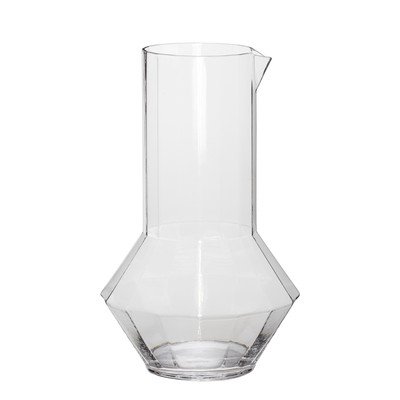 Dzbanek Aster marki Hübsch jest wykonany ręcznie z wytrzymałego, przezroczystego szkła. Jego unikalny kształt z fasetowaną podstawą nadaje mu nowoczesny i elegancki wygląd, który ozdobi każdą kuchnię lub stół.